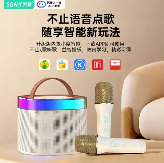 索爱(soaiy)k歌麦克风音响一体唱歌神器一体式话筒音响一体自带声卡家庭ktv音响套装儿童话筒SK2AI版双麦