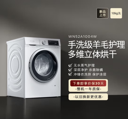 西门子(SIEMENS)iQ300 10公斤滚筒全自动洗衣机烘干机一体机 蒸气除菌 祛味除螨 羊毛洗 深层自洁 立体烘干 1004W